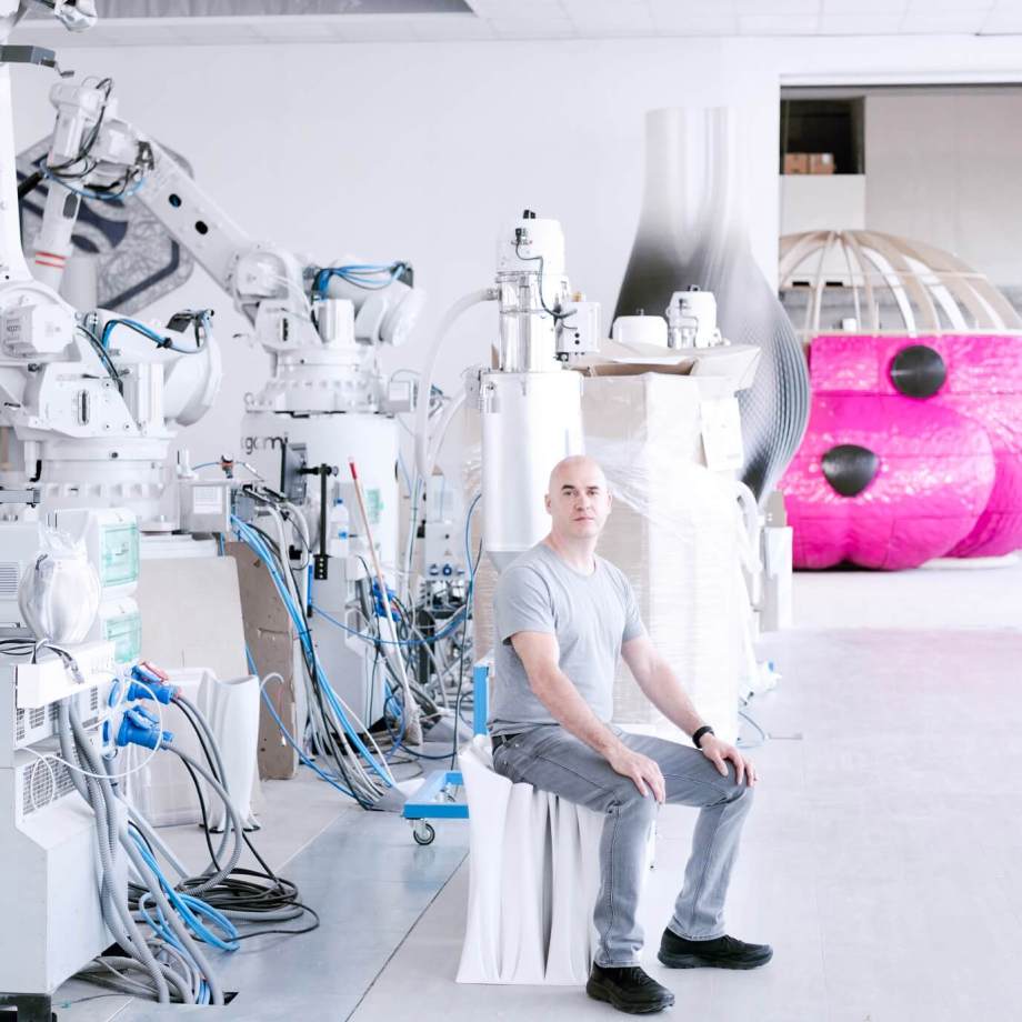 In Kombination aus traditioneller Skulptur und neuester Technologie und Design zeigt der Pink Bear Pavillon eine einzigartige Mischung künstlerischer Produktionsmethoden. Der Prozess startete mit einem handgeformten 6 cm großen Kopf, der dann 3D-gescannt wurde. Dieses digitale Modell wurde anschließend mit 3D-Technologie und acht ABB-Roboterarmen gedruckt. Dieser innovative Ansatz verbindet die greifbare Kunst der Skulptur mit präziser Robotik und schafft eine nahtlose Verschmelzung vergangener und zukünftiger Techniken.