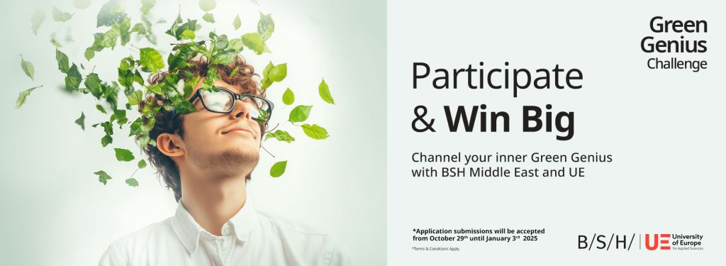 United Arab Emirates, Dubai, 29 October 2024: University of Europe for Applied Sciences Dubai (UE Dubai) in collaboration with BSH Middle East, proudly announces the launch of the Green Genius Challenge: Eco-Appliance Edition. This innovative competition invites high school students aged 16 to 18 in Dubai to conceptualize ground-breaking home appliances that prioritize energy and water conservation, encouraging a sustainable approach to everyday living.